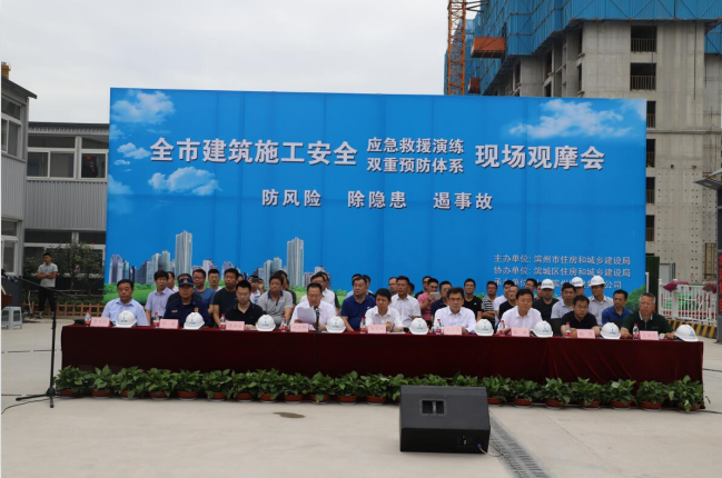 全市建筑施工安全應急救援演練和雙重預防體系現場觀摩會在山東濱州城建集團公司黃河馨苑項目部召開