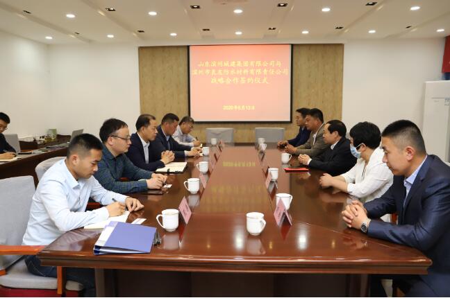 5月13日上午,山東濱州城建集團有限公司與濱州市良友防水材料有限責任公司戰略合作協議簽約儀式在辦公樓601會議室舉行。集團公司總經理孟慶國、董事王濤,濱州良友防水公司總經理李成順、常務副總經理付紅衛等領導出席會議。